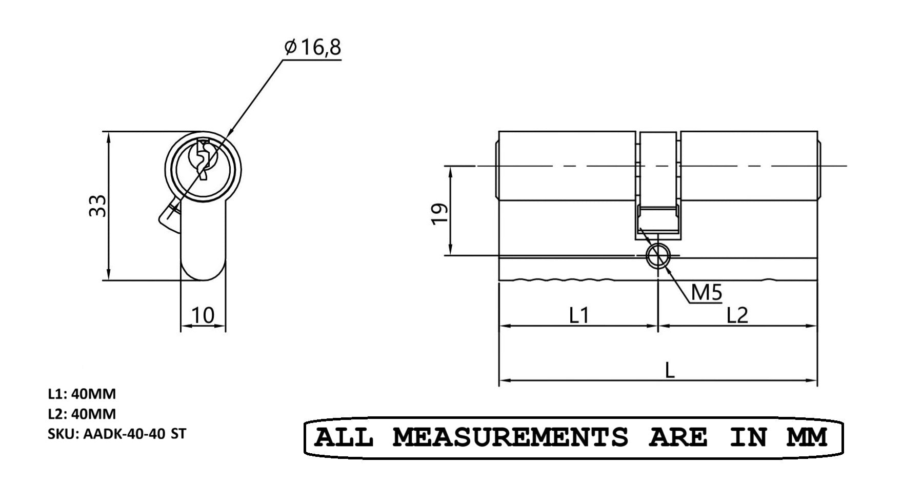 - Each Cylinder includes 1 breakable machine screw M5x80mm for fixing cylinder to multipoint lock case with backset up to 2-3/4" (70mm)