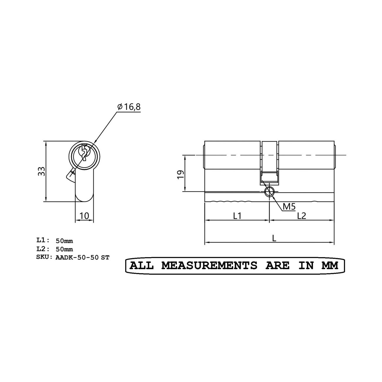 - Each Cylinder includes 1 breakable machine screw M5x80mm for fixing cylinder to multipoint lock case with backset up to 2-3/4" (70mm)