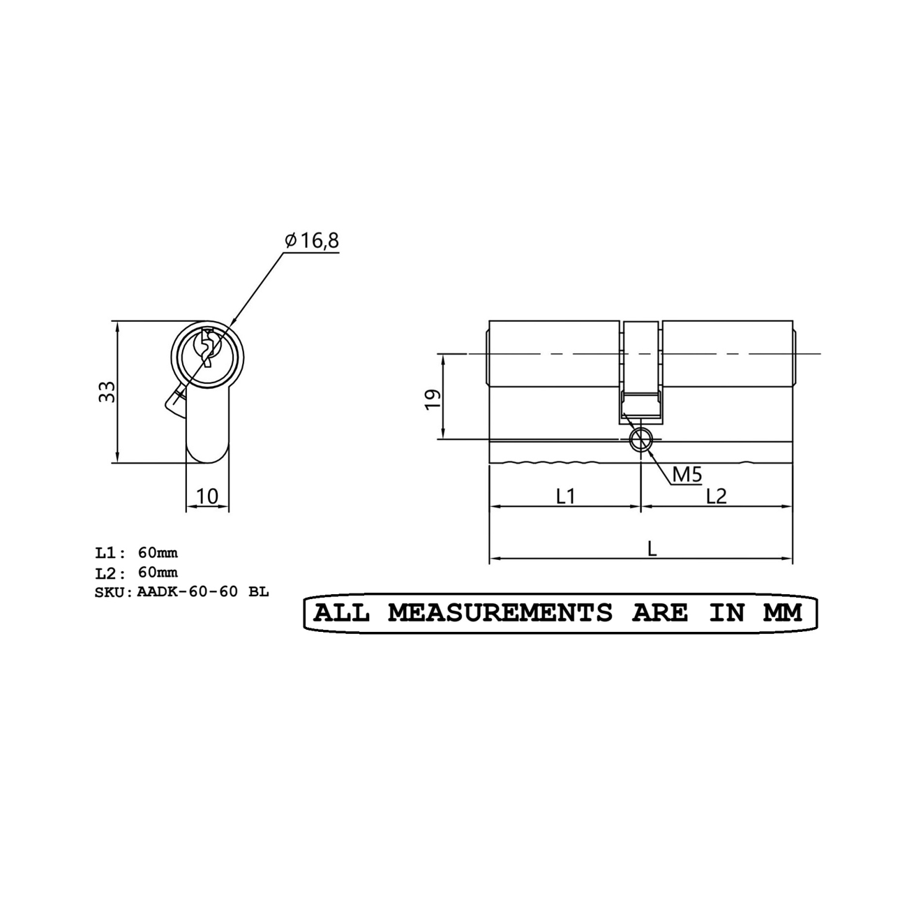 - Each Cylinder includes 1 breakable machine screw M5x80mm for fixing cylinder to multipoint lock case with backset up to 2-3/4" (70mm)